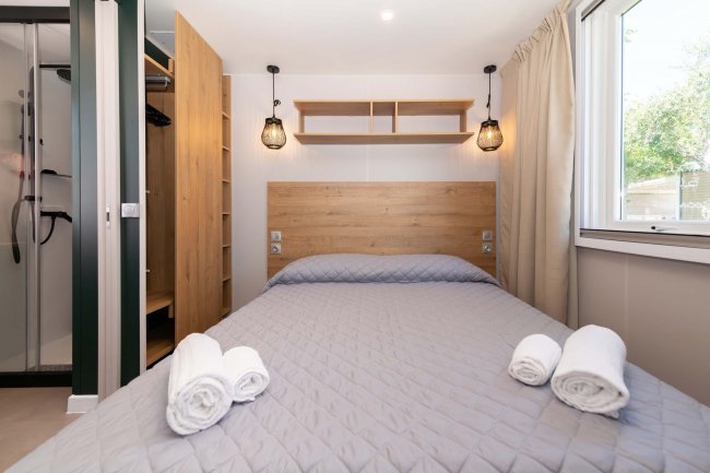 • CASA MOBILE BALI: le nostre nuovissime Bali sono delle mobile home ad una camera open space ad ampio volume con: angolo cottura, comodi servizi privati e verandaGli alloggi sono composti da soggiorno/cucina, divano con posto letto, angolo cottura con piano a 4 fuochi, cappa aspirante, frigorifero sotto top (97 lt.), lavello, microonde, pentole e stoviglie. È possibile separare l’ambiente della camera matrimoniale con una tenda divisoria. Un bagno completo di tutti i servizi con doccia XXL (120x80cm). La veranda arredata con tavolo e 4 sedie, due poltroncine ha una superficie di 12 mq. La veranda esterna è immersa in un giardino esclusivo arredato di 60 mq.