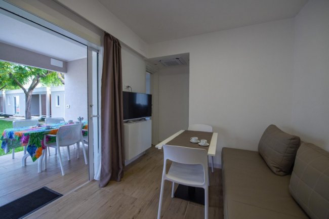 Case mobili Trilocali da 3 a 6 posti e Quadrilocali fino a 6 posti. Tutte le case mobili sono moderne e funzionali dotate di veranda esterna attrezzata, angolo cottura con frigorifero, climatizzatore, Tv, uno o due bagni. Alcune tipologie sono dotate anche di microonde, lavastoviglie e cassaforte.
