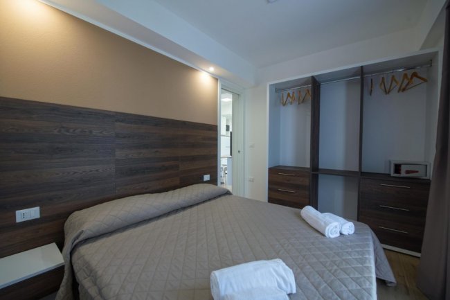 Gli alloggi sono pensati per famiglie da 3 a max. 6 persone e sono composti da soggiorno/cucina, una camera matrimoniale, una/due camere con due/tre letti, uno/due bagni. Gli alloggi sono dotati di climatizzatore e TV. Veranda esterna con tavolo, sedie e 2 sdraio.