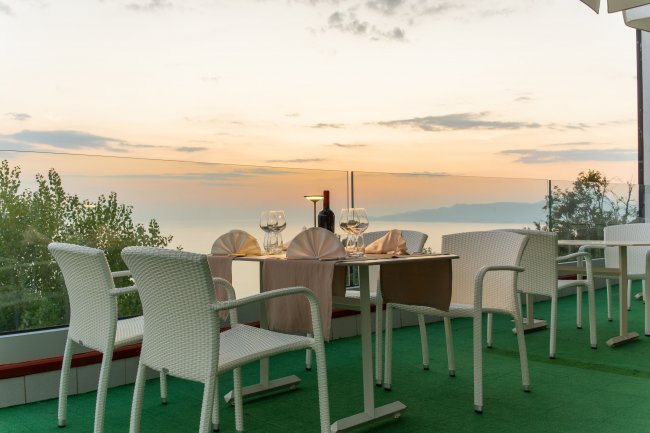 Tutte le camere Superior sono vista mare con terrazzo privato attrezzato con tavolo, due sedie e stendi biancheria