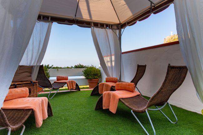Tutte le suites sono vista mare panoramica con doppio terrazzo privato attrezzato con tavoli, sedie e stendi biancheria