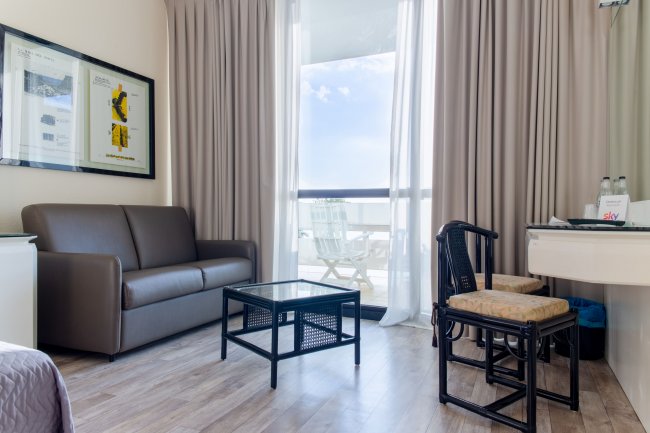camere di 50 mq, in doppio ambiente, aria condizionata, zona living attrezzata con tv e divano letto, ampio ingresso con cabina armadio, letto matrimoniale con letti aggiunti e/o divani letto, tv, wi-fi, cassaforte, mini frigo, bollitore, macchiana espresso, upgrade sistemazione spiaggia, prenotazione servizio navetta, tavolo riservato al ristorante, tel mare, kit cortesia con accappatoio con cambio gioranliero.