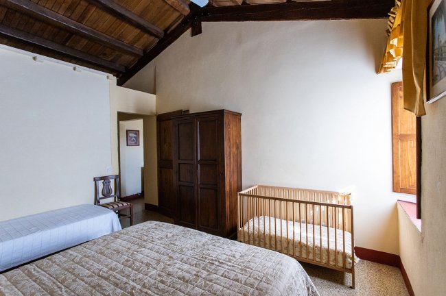 alloggio al piano terra arredato con mobili antichi, soffitti originali e pavimenti in graniglia, letto matrimoniale, lettino singolo e divano letto, cassetta di sicurezza e wifi.