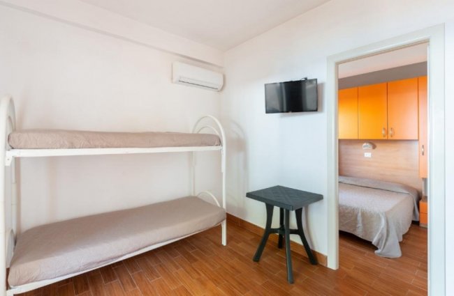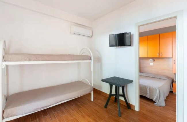 tutti con ingresso indipendente, letto matrimoniale più letto a castello, tv, aria condizionata, angolo cottura, box doccia, spazio esterno attrezzato.
